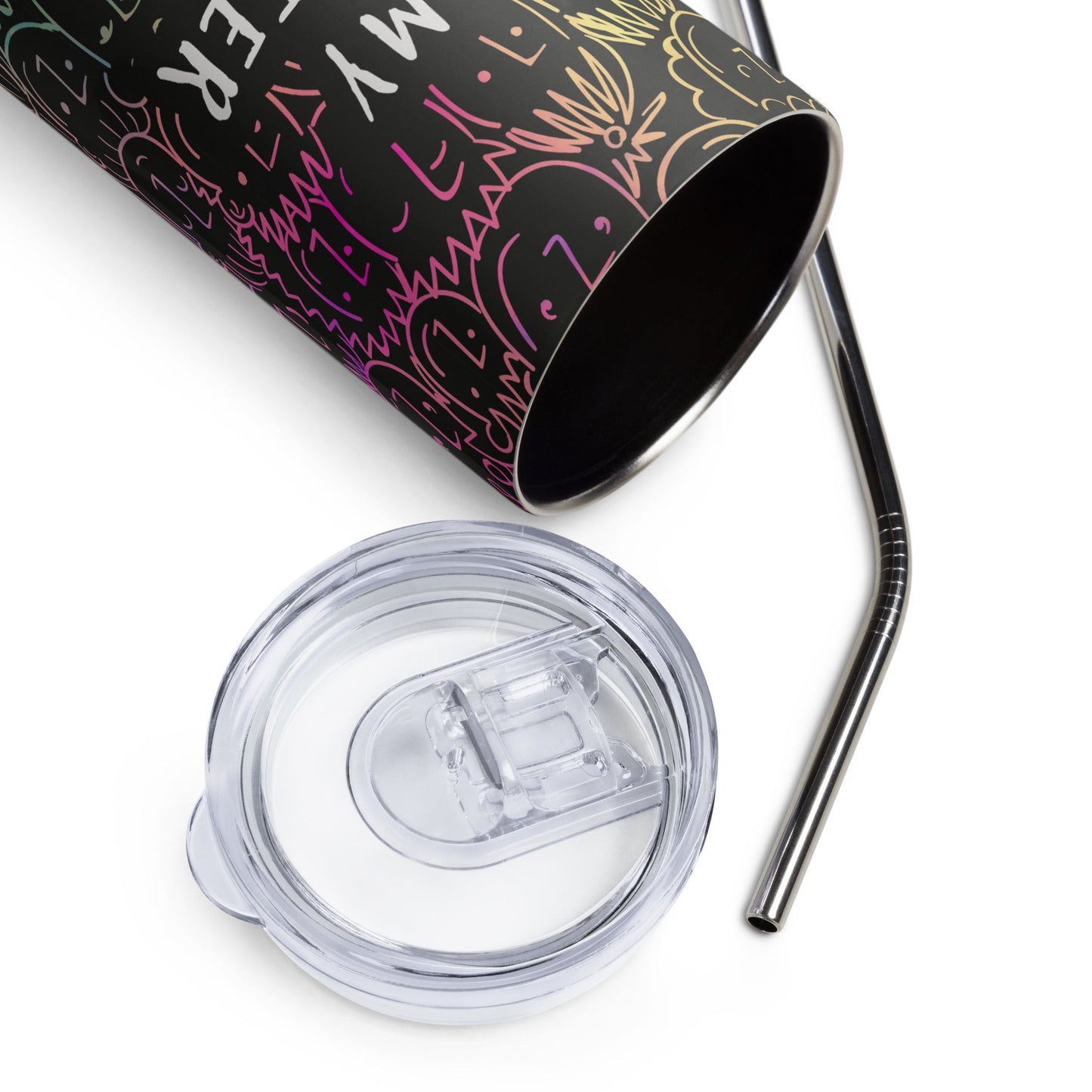 Enjoy hot or cold drinks on the go with this stylish stainless steel tumbler! This reusable tumbler with a metal straw is a perfect combo for hot or cold drinks at any time of the day.